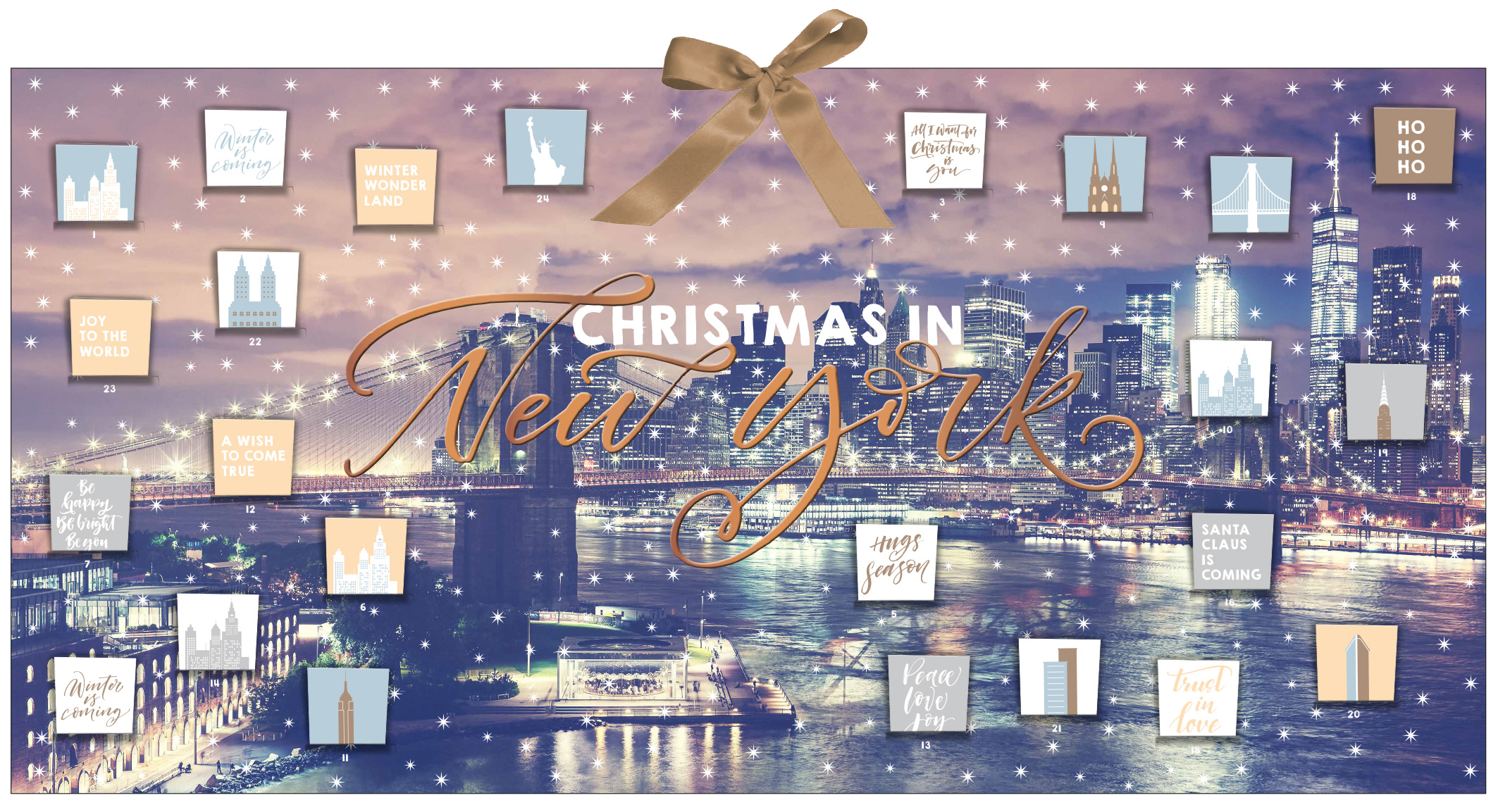 Dieser Adventskalender nimmt einen auf die Reise in die legendäre Vorweihnachtszeit in New York. Ein Muss für alle Fans des Big Apple!