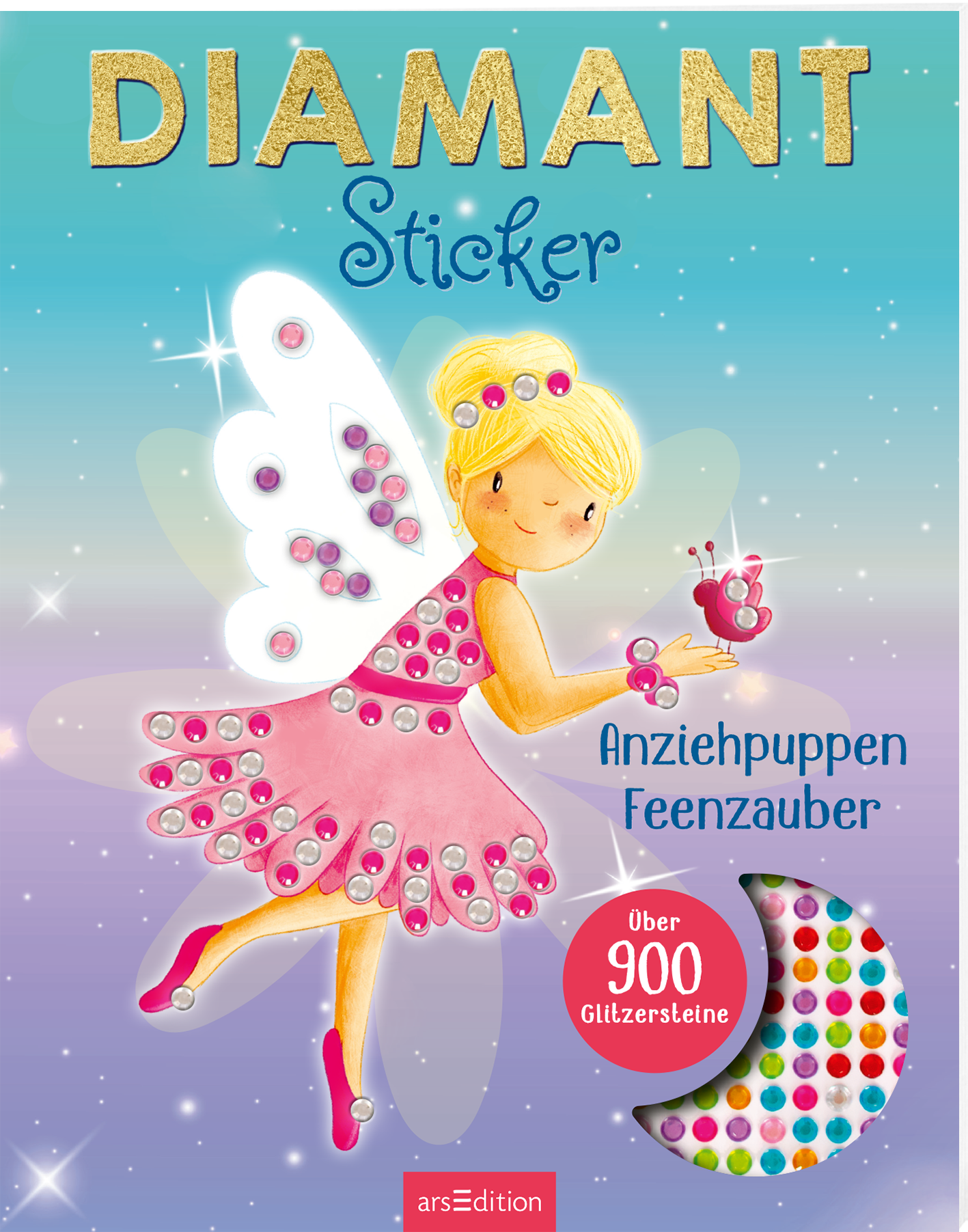 - 16 zauberhafte Anziehpuppen: Die wunderschön illustrierten Figuren können kinderleicht mit den selbstklebenden Steinchen verziert werden - so wird jedes Feenkleid zum glitzernden Kunstwerk