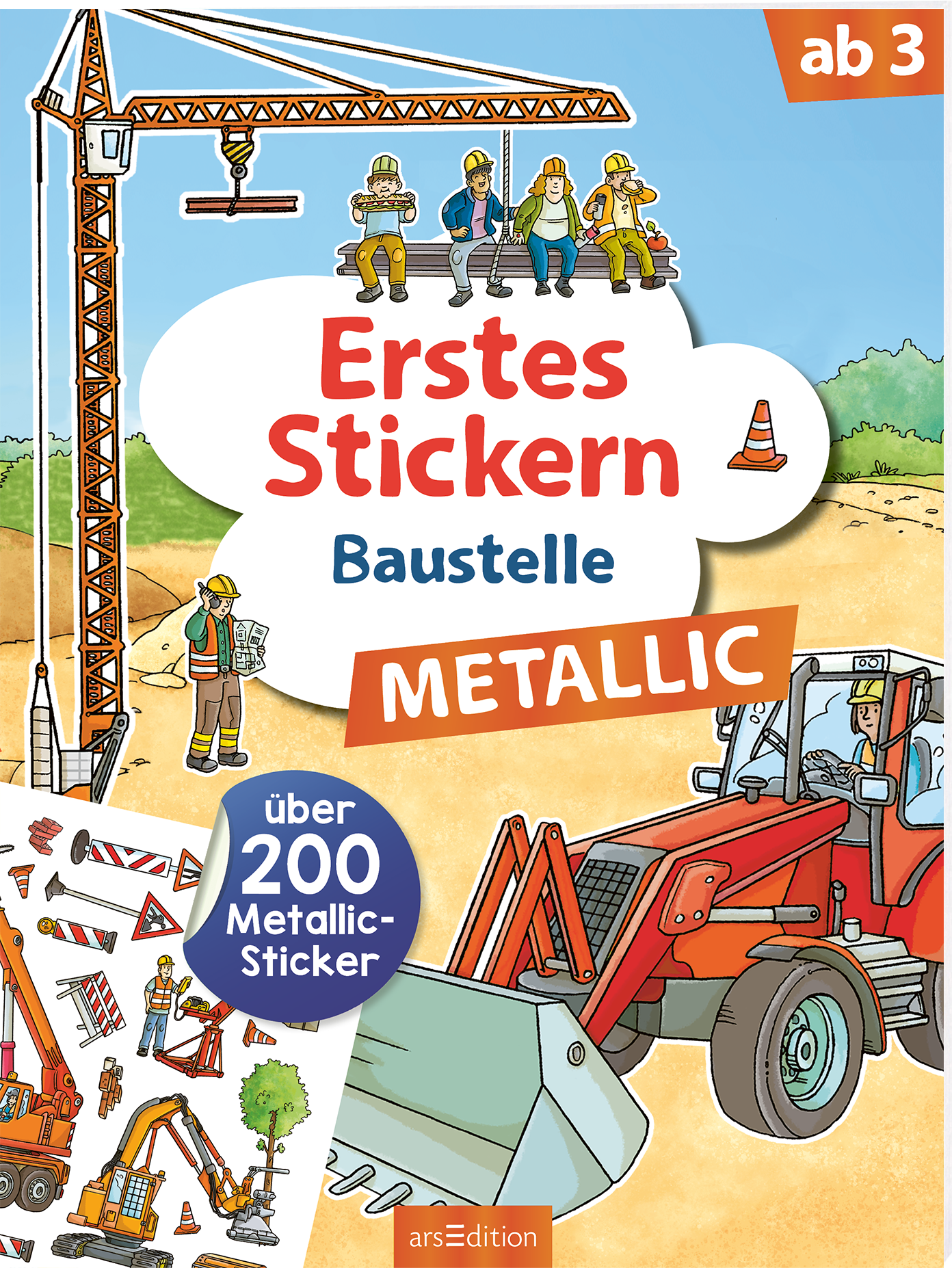 Ob Bagger, Kran oder Betonmischer - auf den bunt illustrierten Seiten gibt es jede Menge zu entdecken! Belebe die unterschiedlichsten Baustellen-Szenen mit den über 200 coolen Metallic-Aufklebern zum Leben!