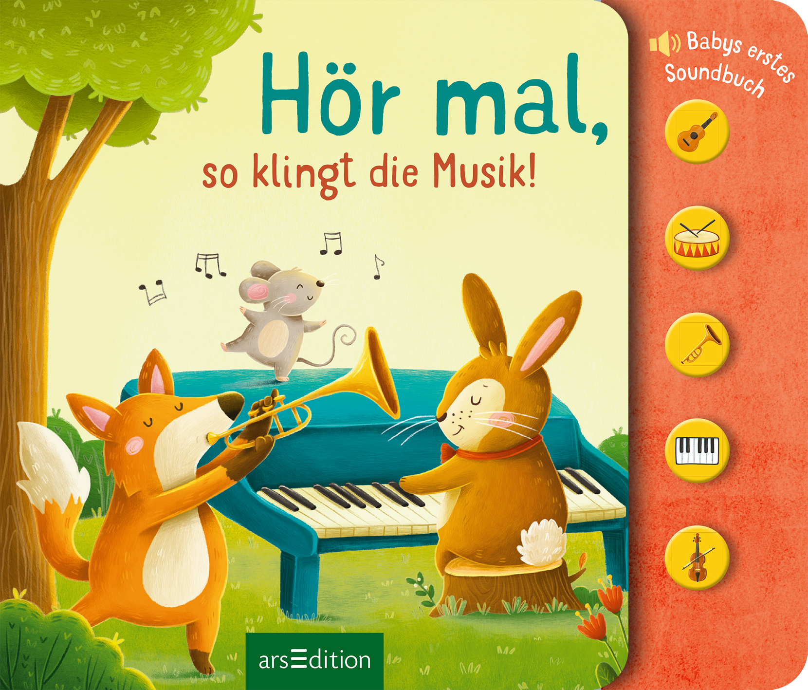 Auf den 5 liebevoll illustrierten Doppelseiten geben die Bewohner des Waldes ihre Musikstücke zum Besten. Die Soundbuttons auf der Leiste am rechten Rand sind babyleicht auslösbar und sorgen für erste Erfolgserlebnisse bei den Allerkleinsten ab 6 Monaten. Durch die Suche nach dem passenden Instrument sorgt das Pappbilderbuch für Interaktion zwischen Groß und Klein und bringt ersten Wimmelspaß mit sich.