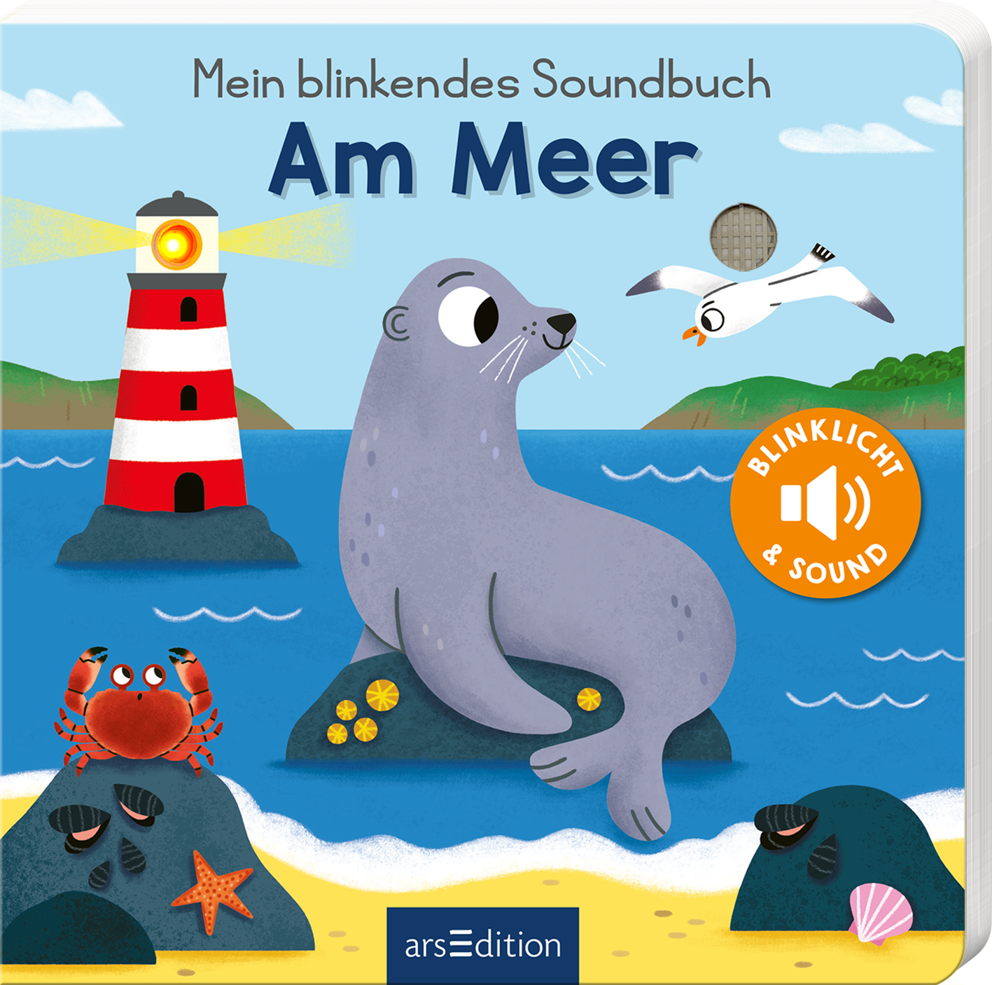 Der große Dampfer läuft tutend und blinkend in den Hafen ein. Ein neuer Tag am Meer beginnt! Es gibt so viel zu entdecken: Delfine, Fische und Quallen tummeln sich im Wasser. Am Strand spielen Kinder, plantschen im Wasser und bauen Sandburgen. Und am Abend schauen alle in den Sternenhimmel und lauschen dem Geräusch der Wellen. Schalte das Blinklicht ein und bringe die Sterne zum Leuchten!
