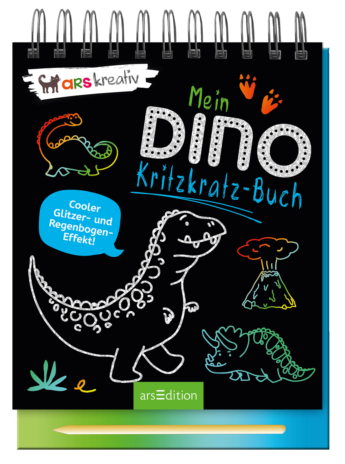 • 18 thematisch passende Hintergründe: Hinter der schwarzen Oberfläche warten spannende Dino-Hintergründe und echte Glitzerfolien darauf, freigekratzt zu werden.