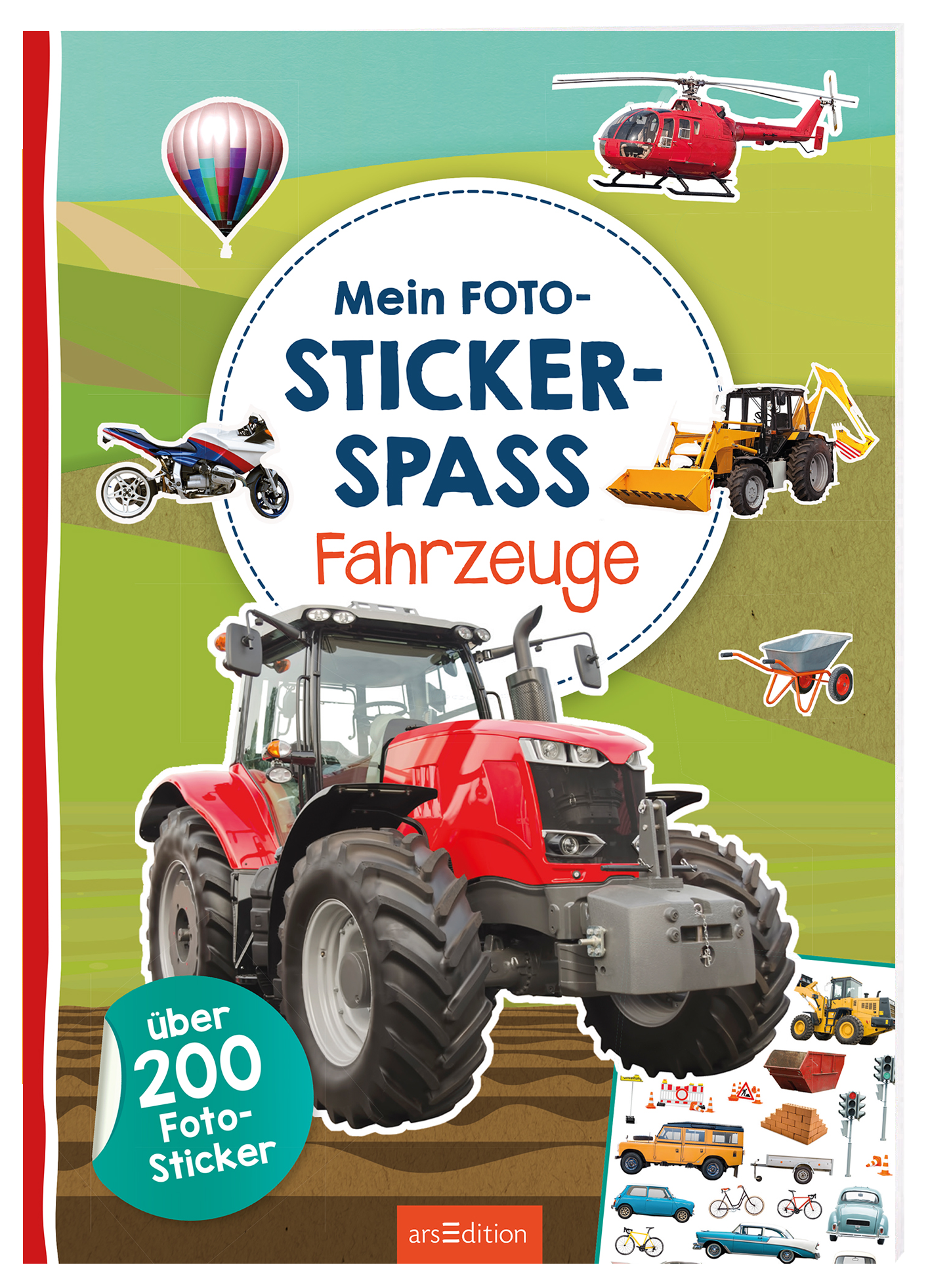 Hier finden Stickerfreunde ab 3 Jahren alles, was sie brauchen: großformatige Foto-Sticker mit ihren Lieblingsmotiven rund um das Thema Fahrzeuge sowie bunt illustrierte Seiten zum Bestickern. Das Kind kann aus über 200 Aufklebern wählen und die Szenen mit Bagger, Auto, Traktor, Helikopter und vielem mehr beleben. Die abwechslungsreichen Szenen zeigen Bilder vom Bauernhof, vom Hafen und von der Stadt, von der Baustelle und vieles mehr. Das großformatige Stickeralbum bietet jede Menge Raum, der Fantasie freien Lauf zu lassen und eigene Szenen zu erschaffen. Die realistischen Foto-Sticker erleichtern das Wiedererkennen der Motive für die kleinen Kinder.