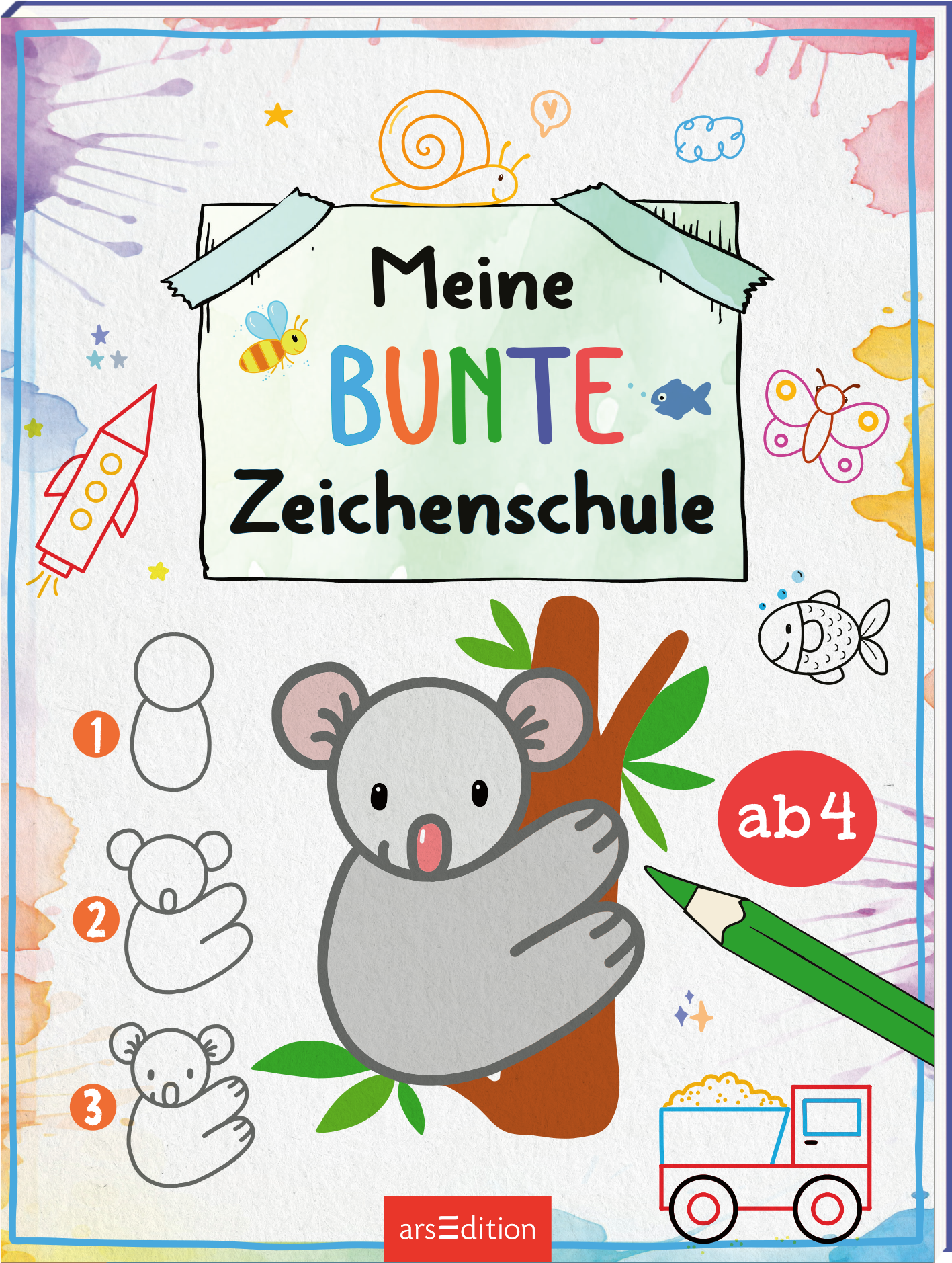 Diese wunderbare Malschule zeigt Schritt für Schritt in kurzen Anleitungen, wie aus einfachen Grundformen tolle Bilder entstehen können. Die Motive werden in 4 Schritten klar erklärt. Ob Auto, Vogel oder Blume, die Bilder sind kinderleicht nachzuzeichnen.