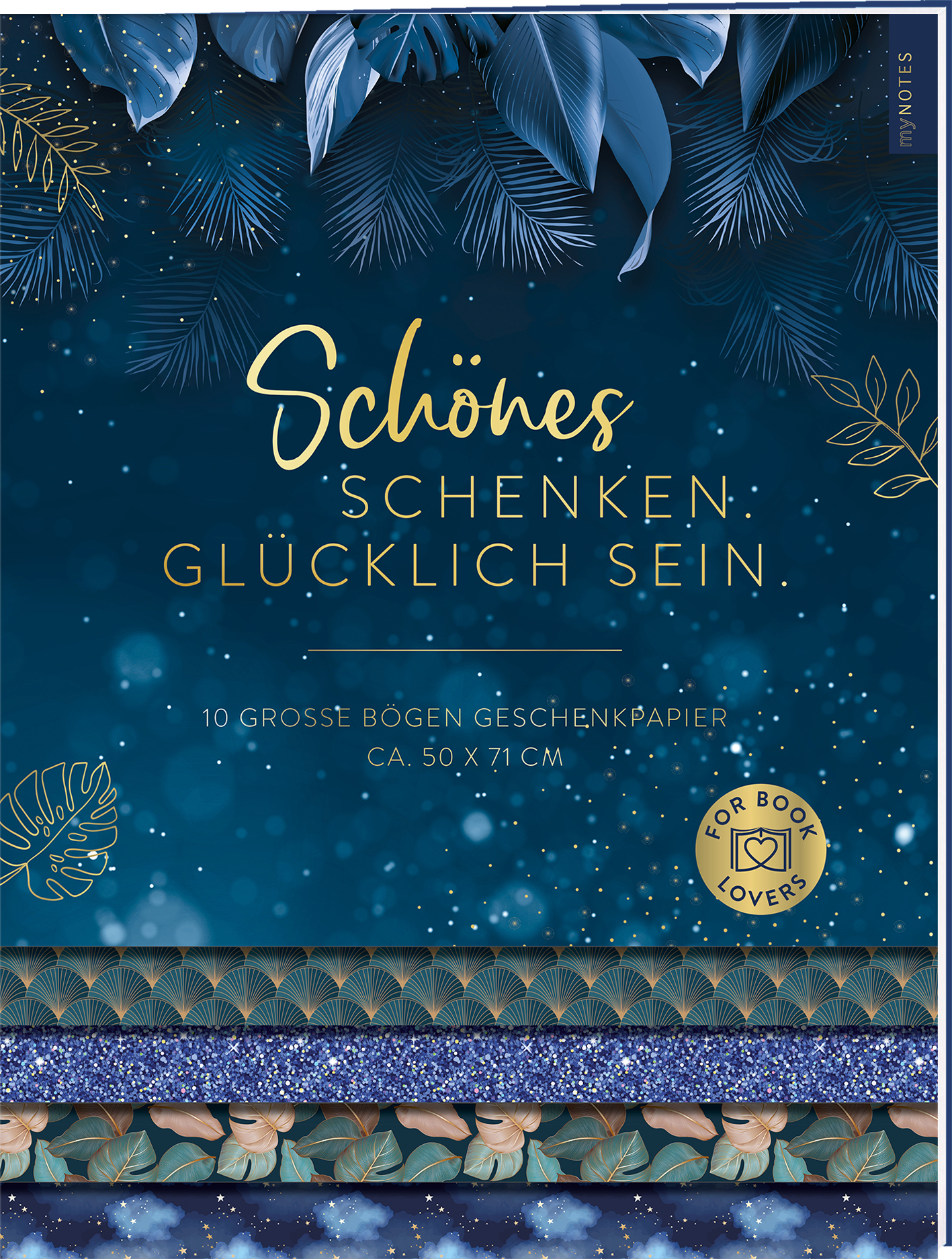 - myNOTES Geschenkpapier-Set im platzsparenden Format: Das Softcover mit den 10 Papierbögen (Größe 50,0 x 71,0 cm, 10 Muster) passt prima in dein Bücherregal