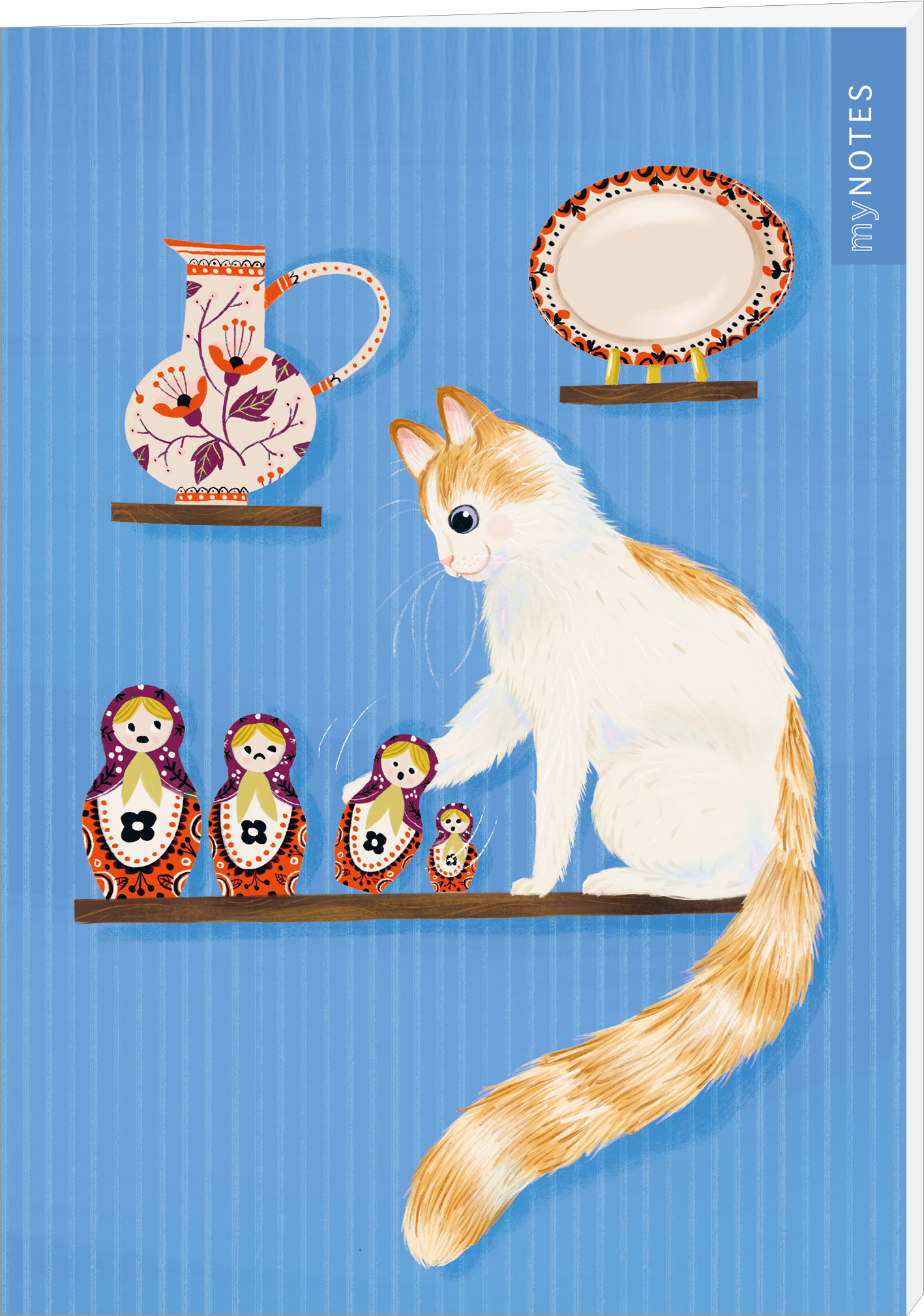 - Zuckersüßes Katzenmotiv: Das liebevoll illustrierte Cover mit frechem Stubentiger im Regal auf leuchtend blauem Hintergrund zaubert nicht nur Katzenfans ein Lächeln ins Gesicht und ist ein echter Hingucker auf deinem Schreibtisch