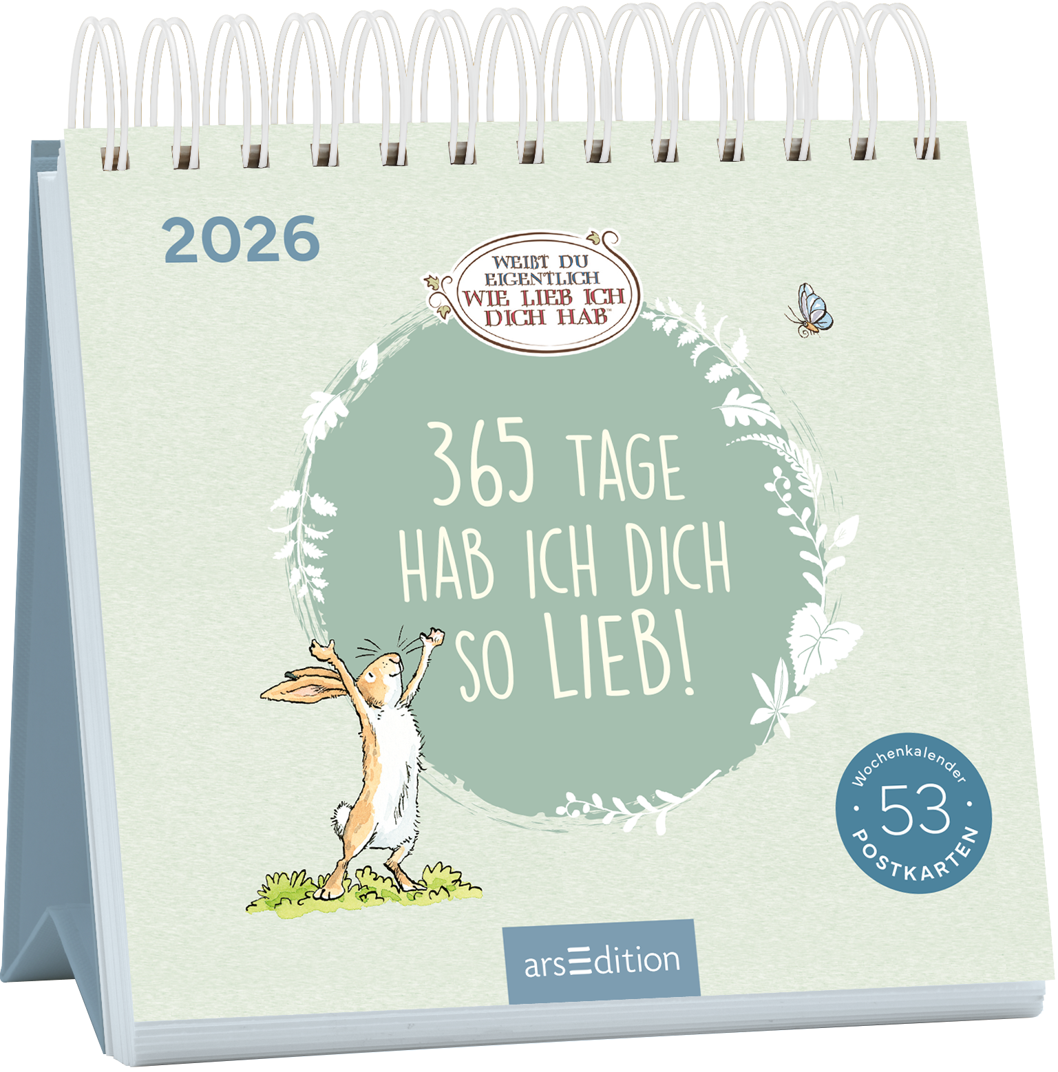 Der weltbekannte Klassiker von Sam McBratney und Anita Jeram bietet hier die Bühne für ein liebevolles Dankeschön an unsere Lieblingsmenschen. In diesem Aufstellkalender finden sich die schönsten Zeichnungen aus „Weißt du eigentlich, wie lieb ich dich hab?“ wieder, kombiniert mit liebevollen Botschaften und Zitaten zu den Themen Zusammenhalt, Liebe, Gelassenheit, Freude und Leben. Es ist ein wundervolles Geschenk für alle, die uns lieb und wichtig sind. Durch das praktische Wochenkalendarium behält man stets den Überblick, egal ob im Büro oder zu Hause. Auf fester Pappe gedruckt, lassen sich die 53 Postkarten an der Perforation ganz einfach vom Kalendarium trennen und können so an liebe Menschen verschickt werden. Durch seine geschmackvolle Gestaltung ist der Kalender auch eine schöne Schreibtischdeko.
