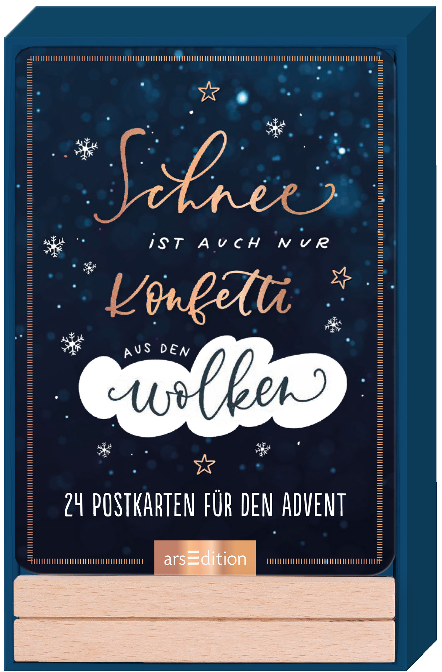 • Stilvoll und robust: Der stabile Holzständer hält 24 hochwertige, gut beschreibbare Postkarten mit Folienprägung - jeden Tag kann eine neue Postkarte gewählt werden