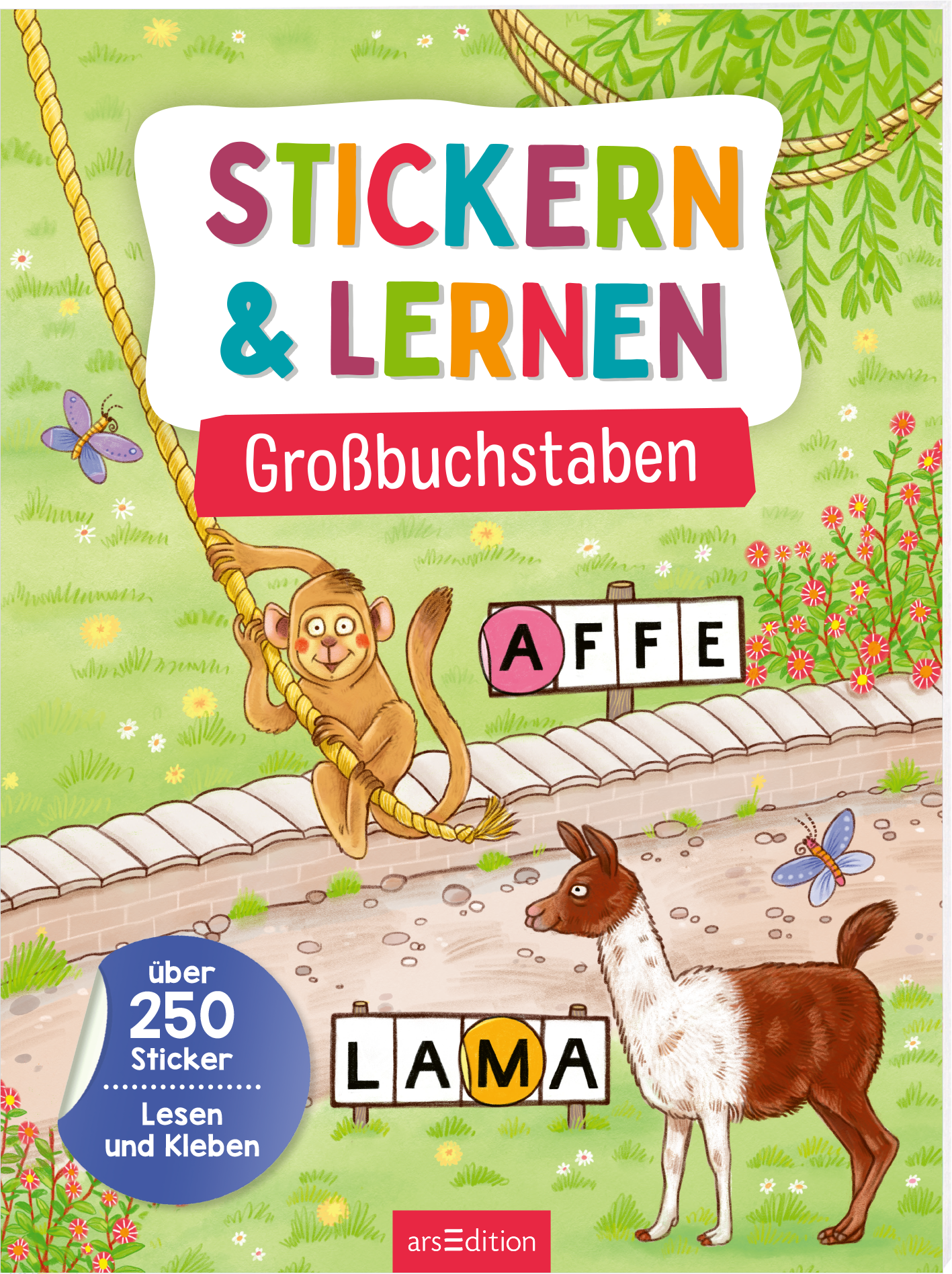 Hier ist Stickerspaß garantiert, und ganz wie von selbst lernen Kinder ab 5 Jahren dabei spielend leicht erste Großbuchstaben. Auf den doppelseitigen Szenen gibt jede Menge zu entdecken und erste Wörter zu lesen. Mit Stickern werden fehlende Großbuchstaben ergänzt und passende Elemente dazugeklebt, so bleibt neben dem Lernen viel Raum für kreative Gestaltung.